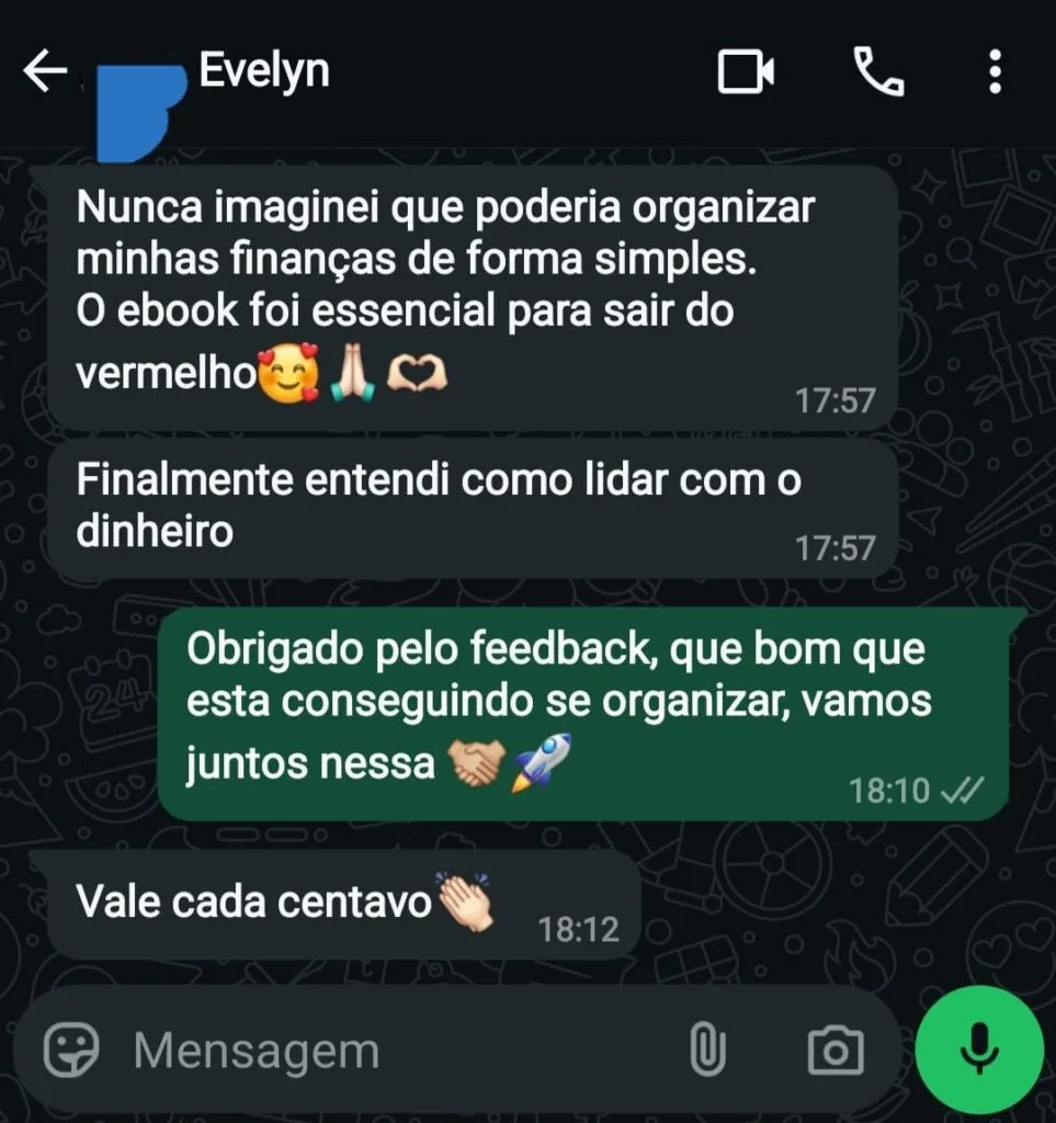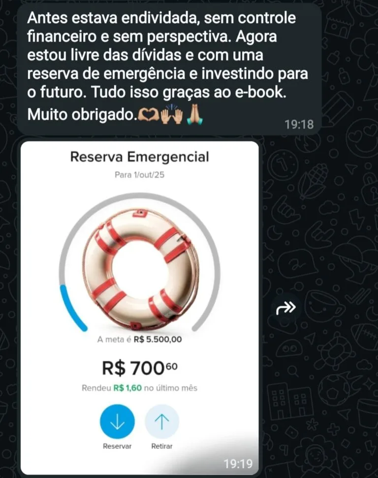 Este ebook já ajudou milhares de pessoas a saírem das dívidas e organizarem suas finanças. Ele foi criado com base em métodos comprovados, como o 50-30-20 e as estratégias Bola de Neve e Avalanche, que são eficazes para qualquer pessoa, independentemente da situação financeira. Além disso, oferecemos uma garantia de 7 dias: se você não gostar, devolvemos seu dinheiro. Não tem risco!